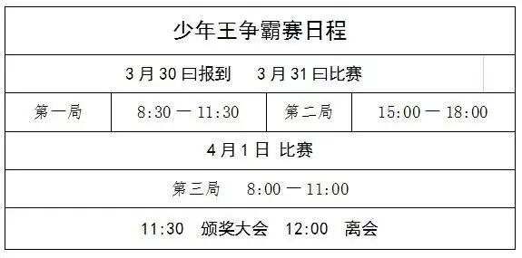 1、少年王、周弘毅5段(南宁)。周弘毅2016年4月在广西围棋“少年王”争霸赛中挑战上届“少年王”邓启鸣5段,周弘毅5段以2:1战绩荣获广西围棋“少年王”称号。