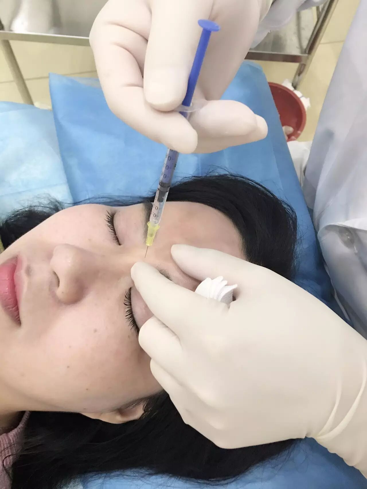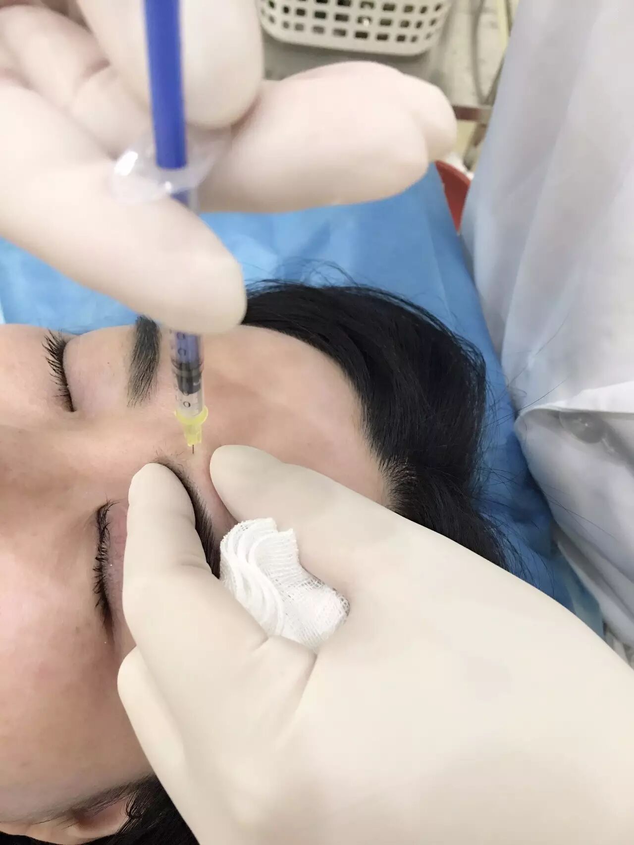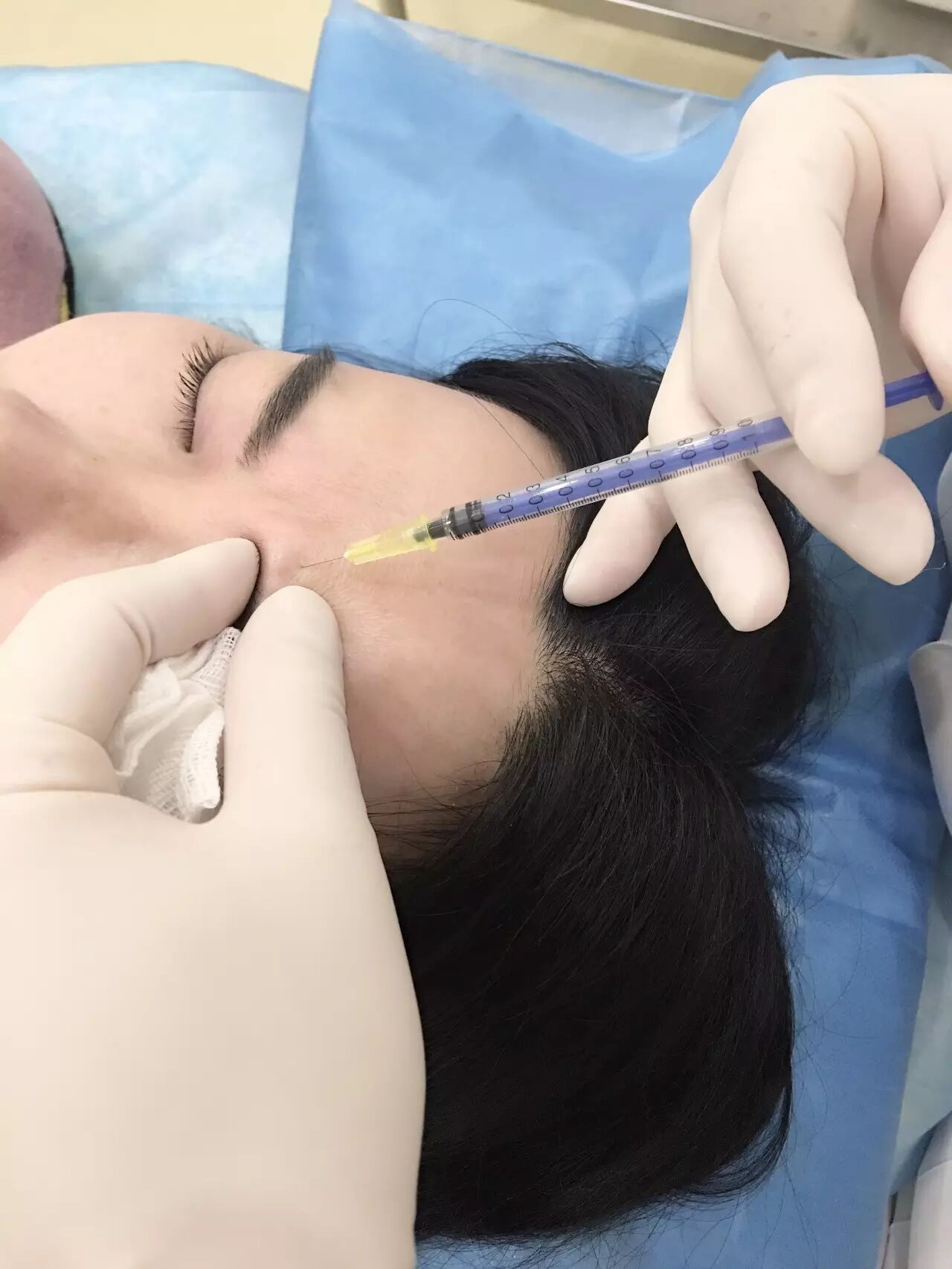注射完眉间正中的部位,紧接着注射两侧,刘院长手法精湛,注射过程Summer都没有感觉到一丝疼痛。