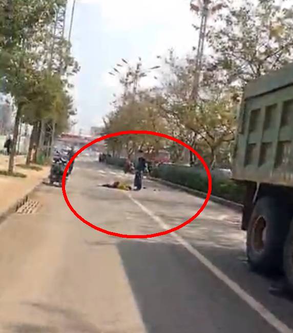 事故发生后,孩子浑身是血倒在路上。幼小的身体哪里承受得住大车的撞击?周围不少热心路人赶忙打电话呼救,或在孩子身旁为他遮挡阳光。▼