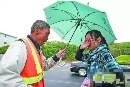 3、一位环卫工捡到一个女大学生的钱包,在雨中苦等两小时,女大学生赶到后,感动得直掉眼泪。