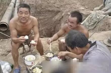 10、某地下排污管道施工现场,工人师傅正在吃午饭,见记者给他们拍照,师傅们不好意思的说:“别拍了,给政府丢脸”。咱们吃的是自己干活挣来的,并非是用公款大吃大喝!咱们虽然光着膀子,但却是在劳动,谁给谁丢脸?