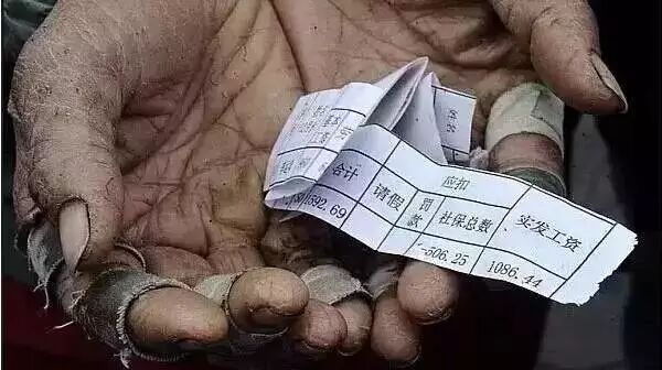 下面是一个清洁工的手和他的工资条 ,天气这么热,请大家理解下吧!虽然我们不能让他们涨工资,但是我想大家看到了可以少扔点垃圾。天气忽冷忽热,请不要乱扔垃圾,我们不比他们高尚,我们唯一需要做的,就是爱护环境,从自己做起。
