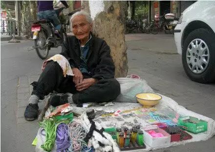 4、同样是在街边放一个碗,但看看这位老奶奶,就知道什么是尊严了!
