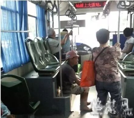 6、这是发生在福州321路公交车上的一幕:12日下午大概2点多,一位民工兄弟上了公交车,可能天气太热或者刚完工吧,他满身大汗,后背衣服全部湿掉了,脚上的鞋也带着很多泥。上车后他犹豫了一下就坐在那个台阶上了。
