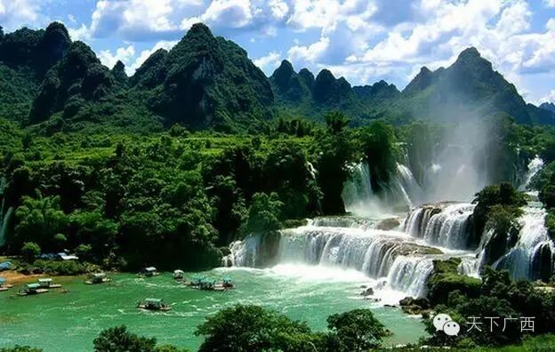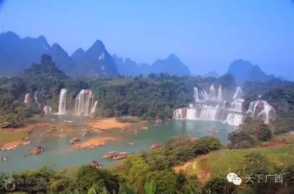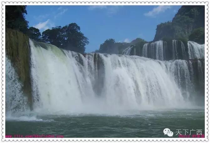 位于广西大新县德天村,中越边境归春河的上游,瀑布气势磅礴,蔚为壮观。