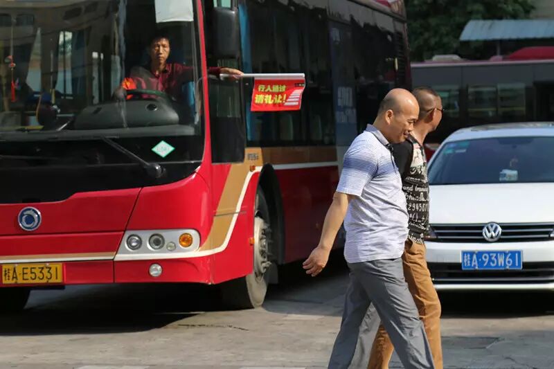 这是一场由南宁市城市客运交通管理处和南宁白马公共交通有限公司发起的“爱心提醒·文明礼让斑马线”活动,更是一场推动文明进程的接力运动。“礼让斑马线”活动就像是一剂文明的催化剂,使礼让这粒文明的种子不断生根发芽并迅速延伸至大街小巷,扎根于每位市民心中。