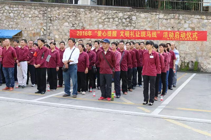 2016年11月16日上午,由南宁市城市客运交通管理处和南宁白马公共交通有限公司联合开展了“爱心提醒·文明礼让斑马线”试点活动,启动仪式在南宁白马公共交通有限公司青山车场进行,广西电视台、南宁新闻台、南宁都市台、南宁日报、南国早报、南宁晚报均到现场进行了拍摄并采访。