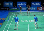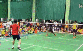 前场搭档,以扑杀封网之势,抢步上网前,轻搓球!