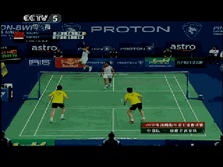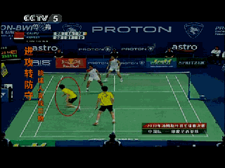当进攻时,两人前后站位。以便形成后场杀球,网前封网的连续进攻局面。