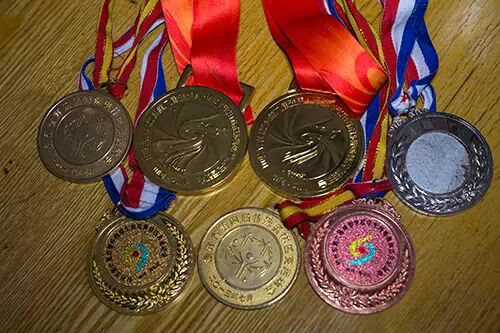 俊俊从他自己的小房间床头柜中,拿出了两块金牌--这是5天前,他刚在四川绵阳举行的第六届全国特奥会上得来的。一块是羽毛球双打,另一块是男子单打。一人独得全国性比赛单打双打冠军,俊俊眯眼笑着说,不仅自己是第一次,好像自己的偶像超级丹(羽毛球世界冠军林丹),也从来没有过吧。