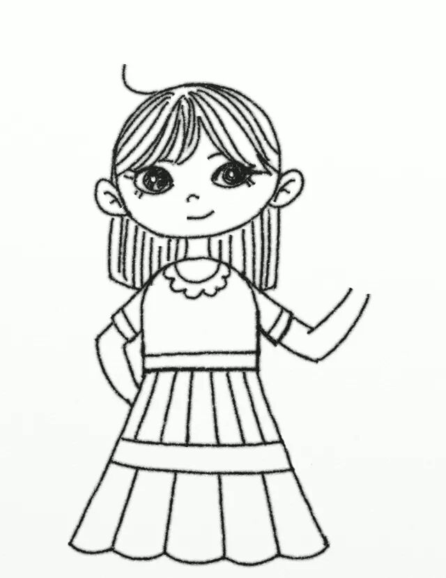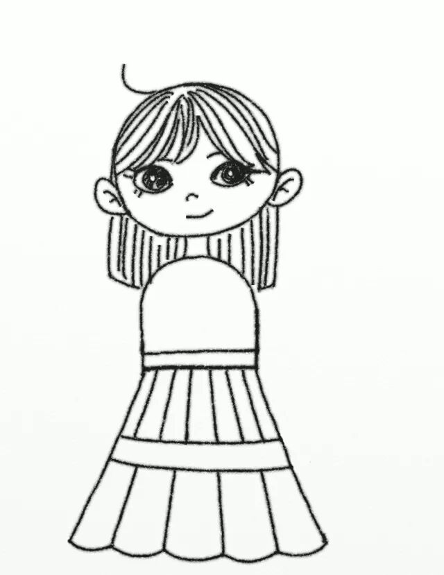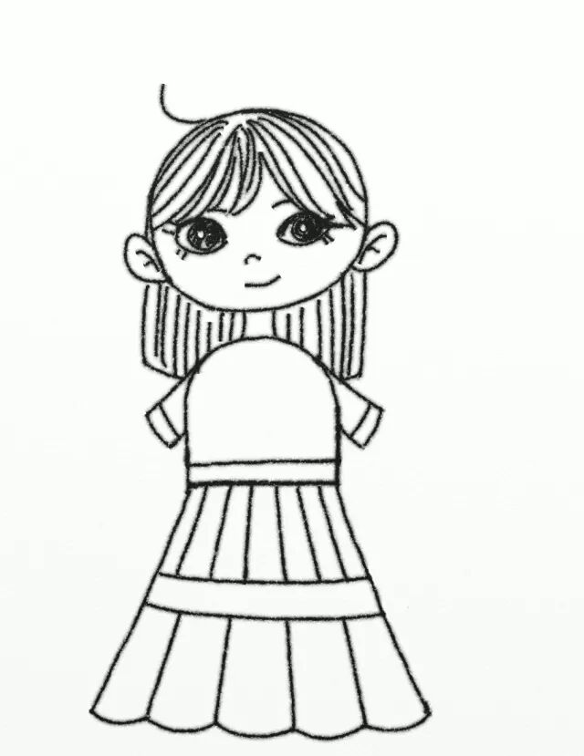 14.给小女孩的衣服画上颜色并设计图案,这一步同样可以发挥自己的想象。