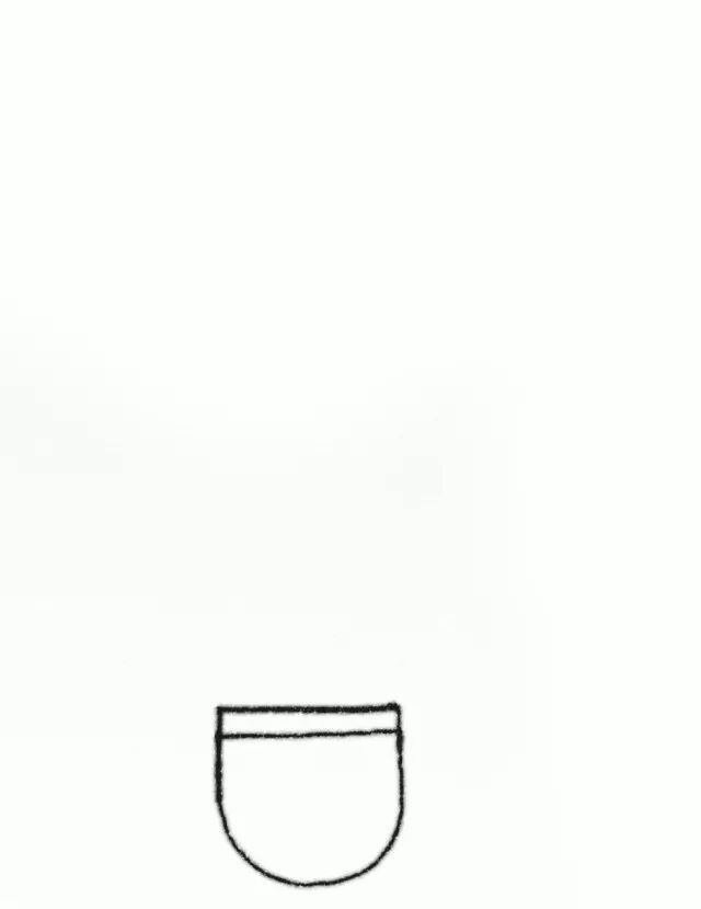 1.先在画纸靠下的部分画出如上图的形状,我们可以把它看做半个胶囊。