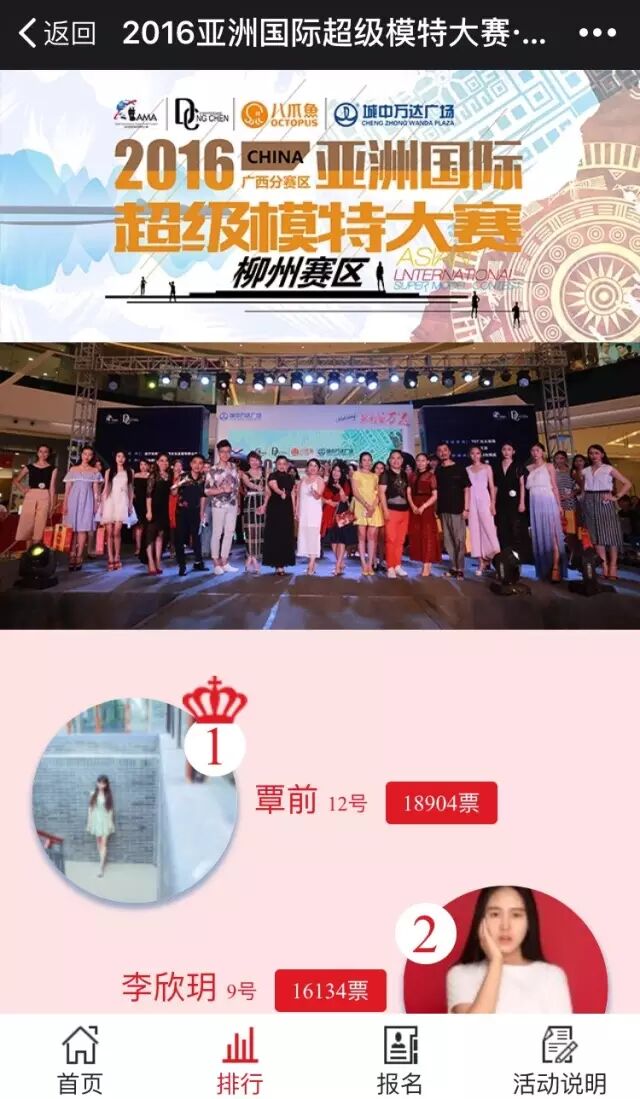 “2016亚洲国际超级模特大赛”柳州决赛网络投票得票数第一的选手,