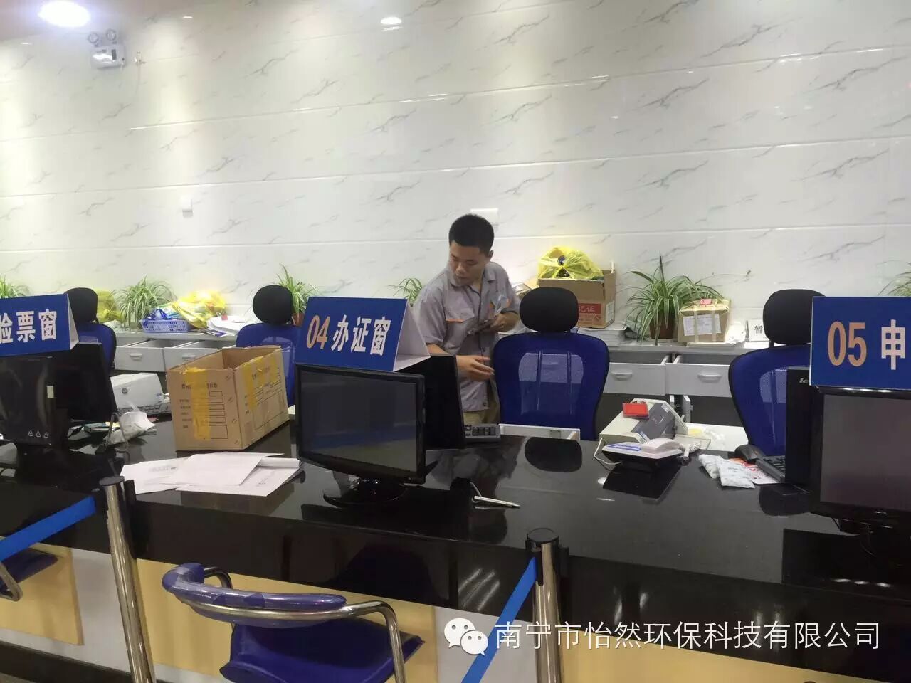 【治理地点】 南宁市青秀区国家税务局 【治理约定时间】 2015年07月17日下午1:30 【治理内容】 甲醛、苯系物、TVOC、氨 【现场检测时间】 每个采样点的采样时间:甲醛9分钟、苯系物25分钟、TVOC9分钟、氨9分钟,利用纳米光触媒、甲醛分解因子、苯系物、TVOC、氨清除剂等。