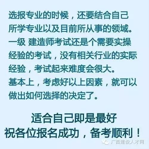 一级建造师考试除了公共科目(建设工程法规及相关知识,建设工程经济,建设工程项目管理),还有10个专业实务科目,考生从中选择一个专业参加考试,不少考生在犹豫,该如何选呢?2016一建报名在即,考生若是对报考什么专业难以做出选择,不妨从下面各个角度来思考考:
