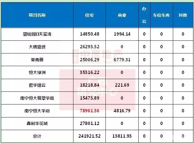 ☞上周(2016.10.31-11.6)南宁市新增商品住宅面积为24.2万㎡,其中恒大翡翠华庭(恒大城二期)新增7.9万㎡,商业方面,常青藤新增0.7万㎡。