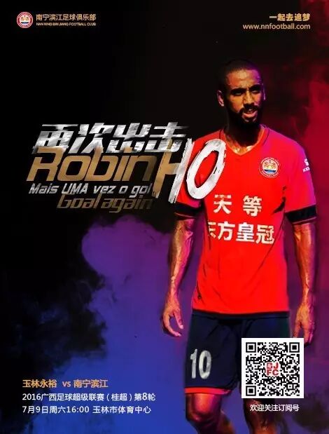 本周六16:00南宁滨江将迎来桂超小组赛第8轮比赛,客战!对手是玉林队,双方的首次较量南宁滨江主场1比0小胜玉林,而打入唯一进球的是本轮赛事海报的主角:Robinho,身披10号战袍!让我们期待他本轮的精彩表现吧!