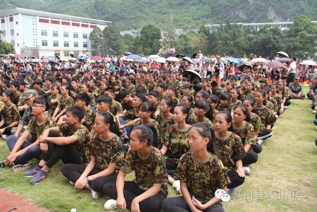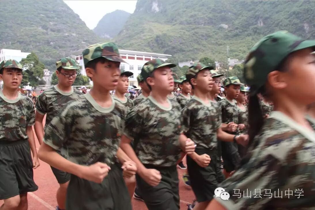 军训是马山中学每一个新学年开学的第一课,旨在通过强化军事训练,加强同学们进入新环境后的自理能力,增强同学们的心理承受能力,让意志品质在吃苦耐劳中得到锻炼和提高,为今后更快更好的适应新环境下的高中学习与生活打下根基。短暂的军训,既强健了学生体魄,也磨砺了他们的意志,更是增强了他们遵守纪律的自觉性。经过此次考验,同学们比以前更强壮、更成熟、更坚强了。
