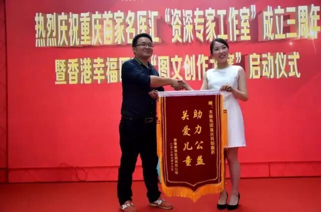 香港幸福医药特向重庆桐君阁西部医药赠予锦旗,