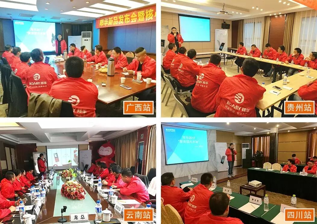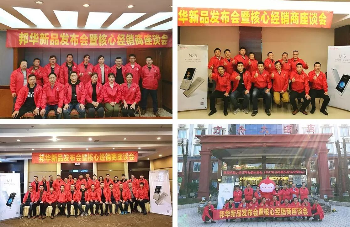 2017年3月中旬,邦华手机新品发布会暨华西区核心经销商座谈会相继在广西南宁、贵州贵阳、云南昆明以及四川成都召开,来自总部办事处营销骨干以及华西区核心经销商合作伙伴欢聚一堂,分享经验、探讨2017销售工作实施方向。