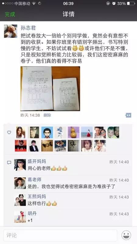 孙老师把这个结果发到了微信群里,家长们都觉得非常神奇,也为这个有心的老师点赞。
