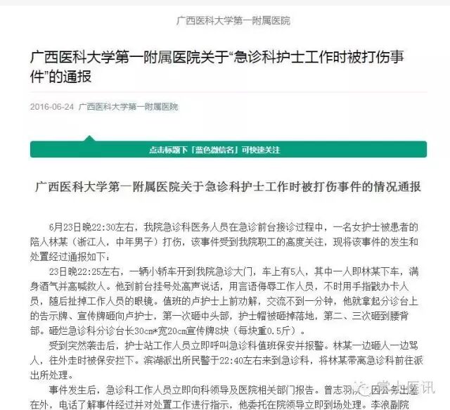 导语:广西医科大学第一附属医院急诊科,发生一起伤医事件。医院这样处理,给力!