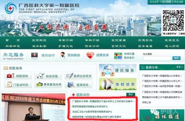 6月24日,广西医科大学附属第一医院采取公开态度,医院官网“医院动态”栏、医院官方微信公众号同时推送这四条消息:
