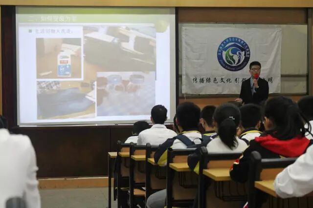 讲座结束后,现场师生主动走到前台,与主讲人就一些垃圾分类回收的疑问进行了探讨,并表达了后续继续聆听讲师团的志愿宣讲的愿望,以及为传播绿色文化贡献力量的激动心情。