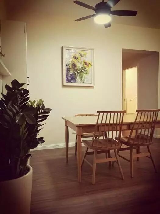 ▲桌尺寸是1.5*0.85米,所以显得桌子很大,没摆椅子之前,觉得怎么摆都很奇怪,加上椅子后就顺眼多了。