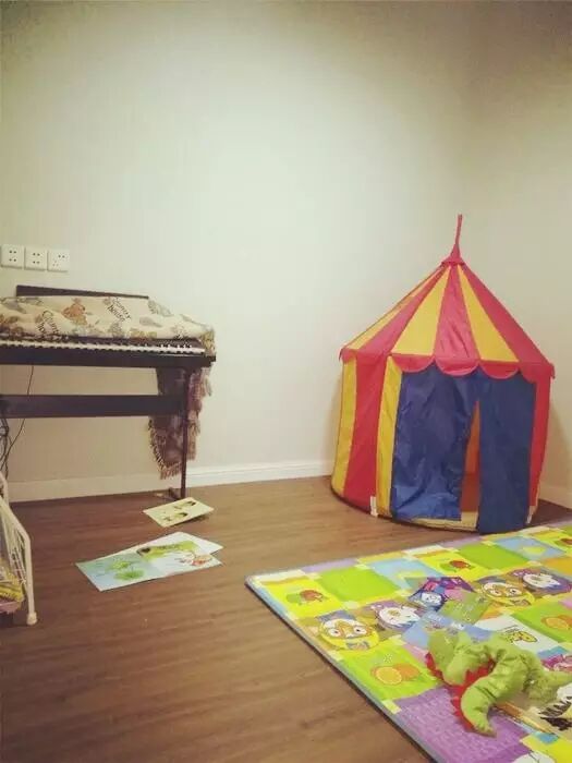 ▲活动房,没做任何柜子,里面就放了娃的东西,让她随意折腾