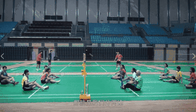 人数比较多的情况下,分两边,一边一般情况下坐5到10人,规则是可以传球,一边最多可以传3下,然后对打。规则就是按照羽毛球比赛的正常规则。这个热身活动可以锻炼腰腹力量、协调性还有手腕鞭打的能力。适合在打球的时候一起玩一玩。输了之后打屁股~