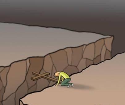 后面的人都慢慢地赶上来了,他们用自己背负的十字架搭在沟上,做成桥,从容不迫地跨越了沟壑。