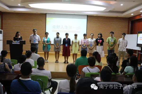 ——南宁市位子渌小学2016年秋季学期一年级家长会秋高气爽的夜晚,南宁市位子渌小学迎来了一次美好的遇见。一年级的小葵娃正式入学,为使小朋友们尽快适应小学阶段的学习和生活,起步精彩人生,9月13日晚上,200多位新生家长如约而至,在南宁市位子渌小学阶梯教室欢聚一堂。南宁市位子渌小学是一所与时俱进、不断发展成长中的学校,有着这样一个年轻充满活力的团队:资深优秀的青军校长带领着一批业务型的中层,培养出了一批又一批业务型的老师,前瞻的育人理念、丰富的教学经验,负责的工作态度,团结的位小团队,这就是我们位小精神所在。领导班子成员一一亮相,赢得了会场阵阵掌声。一年级的正副班主任们年轻富有朝气,阳光集聚智慧!相信在她们温情的栽培下,这些小幼芽定会繁花似锦,硕果满枝。