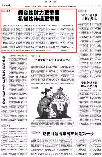 ▲八桂纵横《舞台比财力更重要 机制比待遇更重要》版面