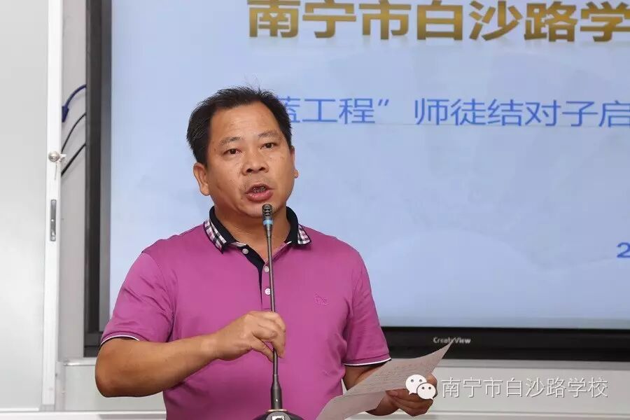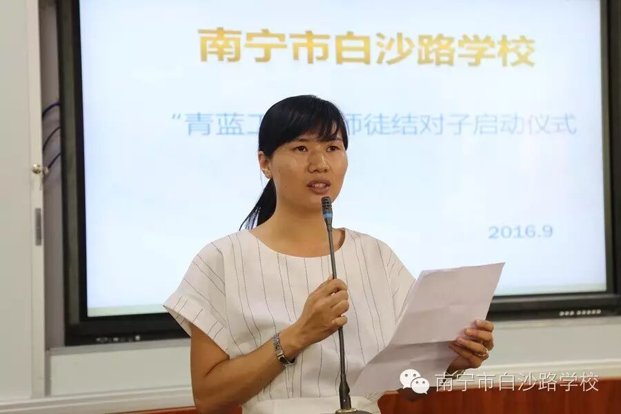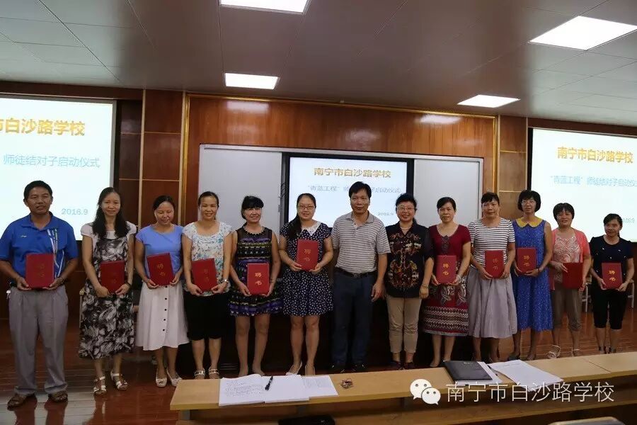 2016年9月7日下午,南宁市白沙路学校全体教师在本校三楼多媒体教室隆重举行“青蓝工程”师徒结对活动。