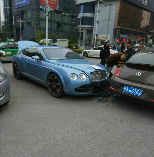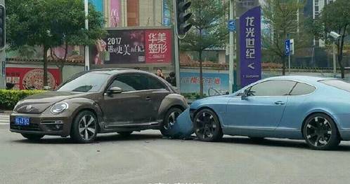 据目击者称这次应该是宾利想掉头撞上甲壳虫的,大众直行被撞了,宾利的维修费估计得几万了,临近过年得做好三防:防火、防盗、防豪车