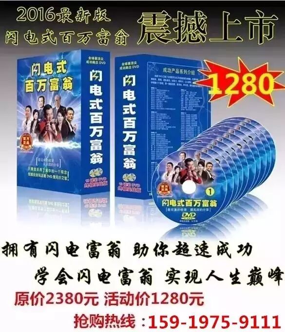 1:立刻拨打电话:159-1975-9111 陈泓宇老师 跟他申请订购《2016闪电式百万富翁》这套产品。