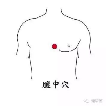 位于两侧正中间与胸骨中线的交接点:对情绪郁闷、心悸、焦躁等有缓解作用。