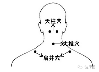 位于第七颈椎下与肩膀外高骨突起(即锁骨肩峰端)连线中点:消除肩膀酸痛,帮助入眠。