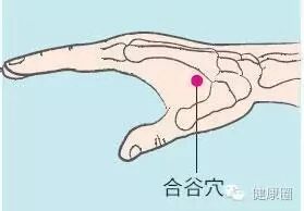 先以右手拇指内侧横纹,对应左手虎口,拇指下压所按之处即是。