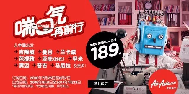 亚航最近良心小促不断,继上周的感恩促销后,接力推出价格不错的促销,部分航线相当于大促价!促销时间覆盖今年剩下的五个多月,补票可入!