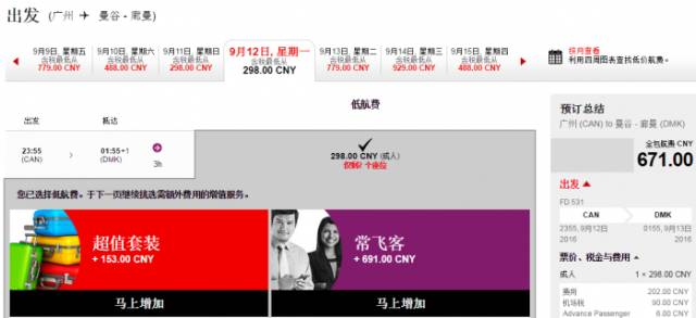 中秋节,广州671/深圳465元=曼谷,往返含税