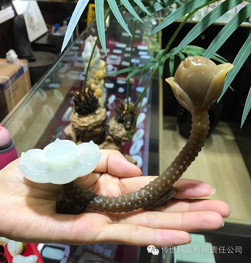 九,新疆和田白玉山料:【巧雕莲花香插】产地:新疆且末 作品工艺精湛,线条流畅。利用糖色刻画的藕茎素雅逼真,形状优美。莲花一朵初开,一朵怒放。对比强烈,美感十足。宝贝玉质细腻油润,结构缜密。脂粉好,白度二级。是一件可摆放欣赏,可实用插香的好物件。长:142.00mm 宽:56.80mm 厚:56.80mm 净重:115.85克