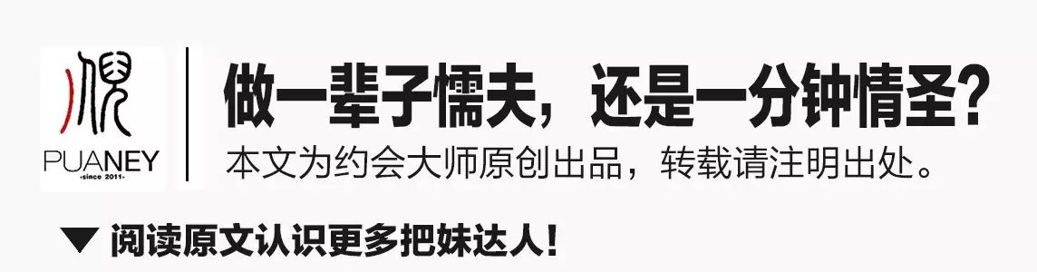 由PUANEY的弟子转变成为一名导师,身份转变,工作内容增多,意味自己把妹时间大大缩短(还好有靓男的“外卖方法:),我会把更多精力和能量投入到把妹教学上,希望把自己从倪神那儿,这几年的把妹经验、人生经历分享给大家。