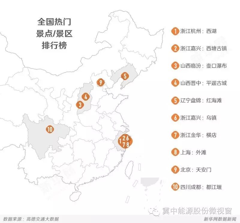 国内热门景区主要分布在江苏、浙江,通往景区的高速预计会发生不同程序拥堵情况,届时务必关注实时路况信息,参考绕行路线前往。