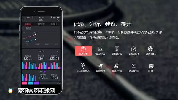 主要功能:挥拍测速、纪录每场的打法特点、使用者之间的扣杀排行等等(颜色随机)