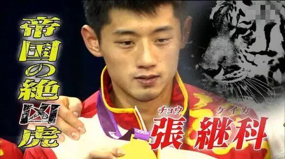 这个镜头还被日本电视台弄上了超中二的配字,从此张继科从藏獒成了帝国的绝凶虎……耻度爆表