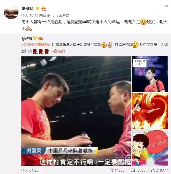 张继科自黑:“图片我看到了,我觉得满像相扑的准备动作,不知道的人以为我是从相扑选手转到打乒乓球的”