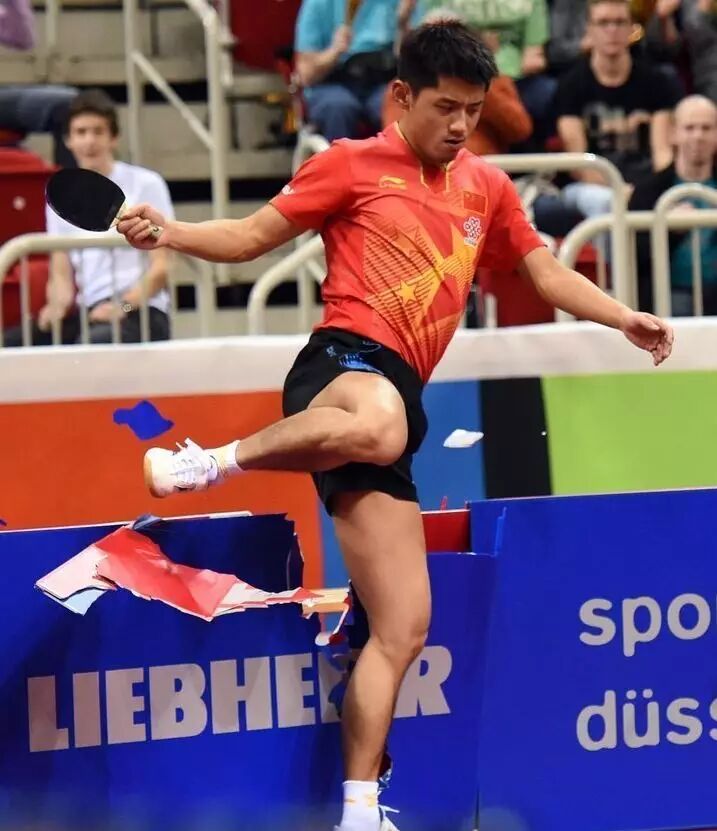 这么好的脚法也给张继科惹了事。2014年10月27日,男乒世界杯决赛,张继科4-3险胜马龙,拿到了新塑料球时代首个男子单打世界冠军。地满场狂奔,扔观众席