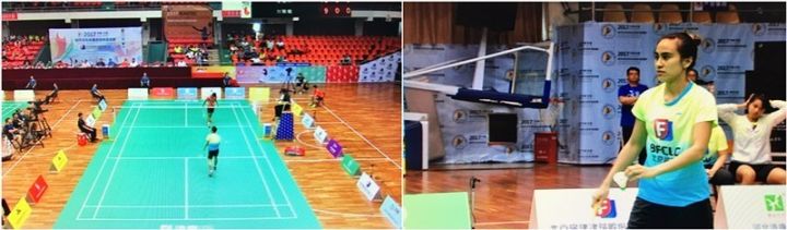 接下来女单比赛,印尼女将贝拉特里克斯·马努布蒂遭遇了中国南宁小将詹安琪的顽强抵抗,詹安琪首局后发制人,两人你来我往,打至26:24,印尼选手贝拉特里克斯才拿下,第二局,詹安琪体力不支,印尼选手贝拉特里克斯以21:9再赢一局。